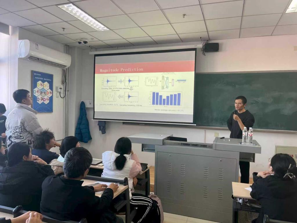 在互动交流环节,参会师生就地震工程中的智能算法设计、数据集构建及工程场景应用等问题踊跃提问,现场气氛热烈。此次报告不仅拓宽了师生在“地震+ 人工智能”领域的学术视野,也充分发挥了计算机科学与工程学院的河北省高校智慧应急应用技术研发中心和河北省物联网监控技术创新中心的学术交流与合作平台作用。下一步,学院将以本次学术交流为契机,围绕地震智能监测、震例智能分析、地震参数预测等方向积极布局地震 AI 相关研究与人才培养,推动与中国地震局相关科研单位在“AI+地震”领域开展更深层次合作。
